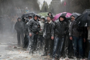 "Москали отмечают Новый год, а украинцы - день рождения Проводника украинского национализма Степана Бандеры", - сказал на митинге на площади Победы глава местной ячейки ВО "Свобода" Олекса Ревенок.