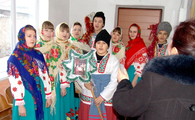 - О старинных традициях я узнала от моей бабушки Акулины Васильевны. Она рассказывала, как они в своем детстве колядовали: славили родившегося младенца Христа и поздравляли людей с праздником. А ведь это были советские времена, но люди как-то помнили и передавали традиции. Бабушка вспоминает, что когда они носили на Святвечер вечерю, им давали всего по 20 копеек, но разве награда была главной? Главное то, что люди их ждали, что петь было интересно и радостно. Когда я стала взрослой и уже работала преподавателем в музыкальной школе, захотелось мне эти традиции возродить. Сначала мы ходили с другими преподавателями, просто поздравляли, говорили хорошие слова. А потом подключили детей, выучили с ними колядки и щедривки, стали проводить лекцию-концерт.