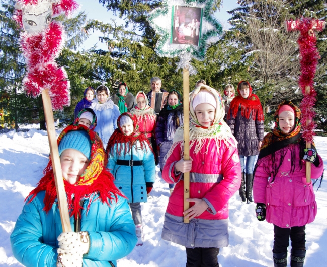 Традиции колядования и щедрования проходят у нас по старинным обычаям. Идем по знакомым, заходим в организации, которые попадаются на пути - в отдел культуры, банки, магазины, редакцию газеты «Нива». Сначала люди удивлялись, а теперь привыкли, заранее приглашают нас, довольны, что старинные обряды продолжают существовать. О том, что мы идем, слышно издалека: ведь мы же идем и поем! Случается, что прохожие останавливаются, просят сфотографироваться.