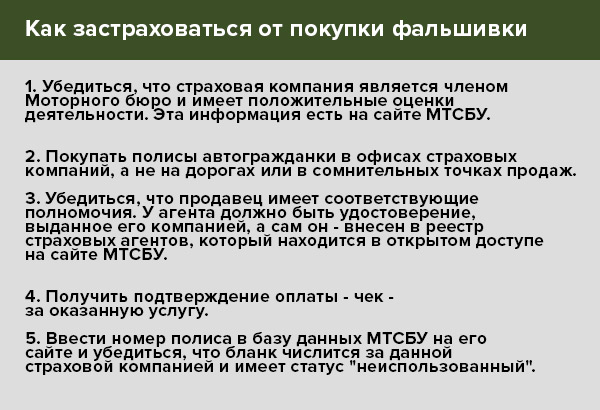 Чтобы избежать покупки фальшивок, эксперты советуют смотреть на стоимость страховки. Если она на 30-40% ниже, чем у других компаний, то покупать не стоит.