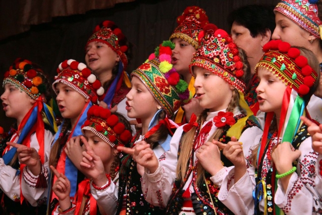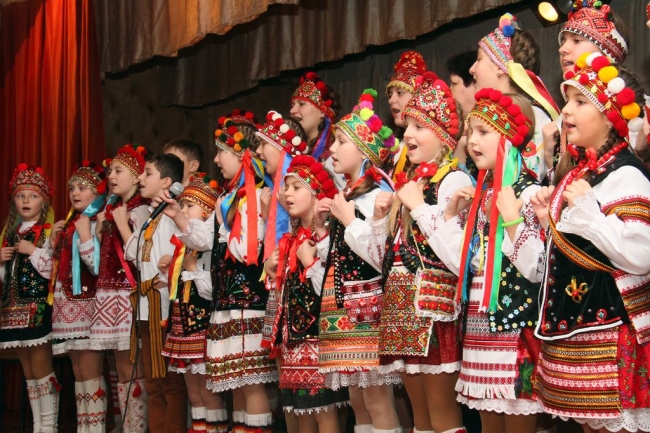 А потом поднимаются на сцену и бойки. На ребятах яркие костюмы – вышитые вручную сорочки и юбки, кептарики и фартушки. На ногах – теплые гетры и кожаные гуцульские постолы. Головы девочек украшают шапочки с разноцветными бубончиками. Как узнали мы позже, одежду многим детям вышивали их родные.