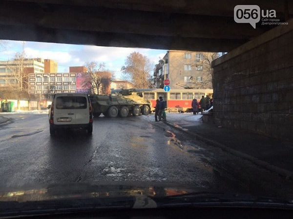 В одном из районов Днепропетровска бронетранспортер Вооруженных сил Украины на полном ходу въехал в трамвай.