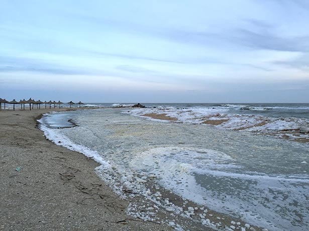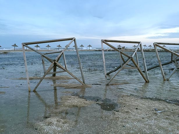 В Запорожской области Азовское море постепенно отрезает Бердянскую косу от большой земли. Как сообщает сайт Город, сегодня волны начали размывать остатки пляжа между отелем «Sun resort» и базой отдыха «Южная».