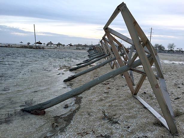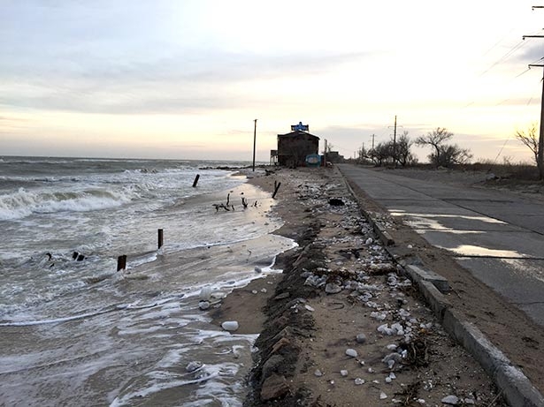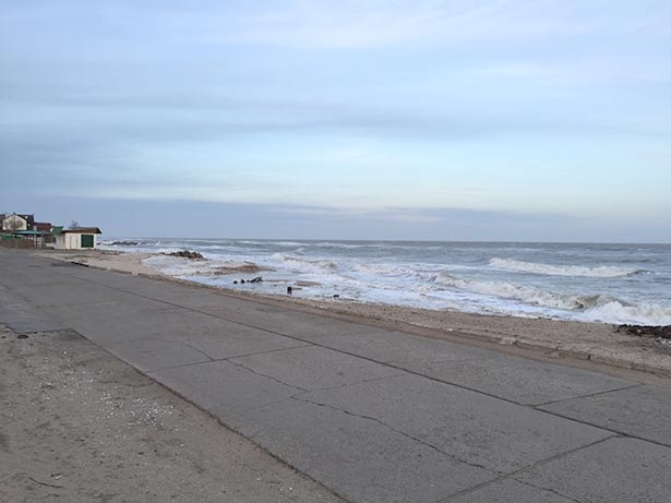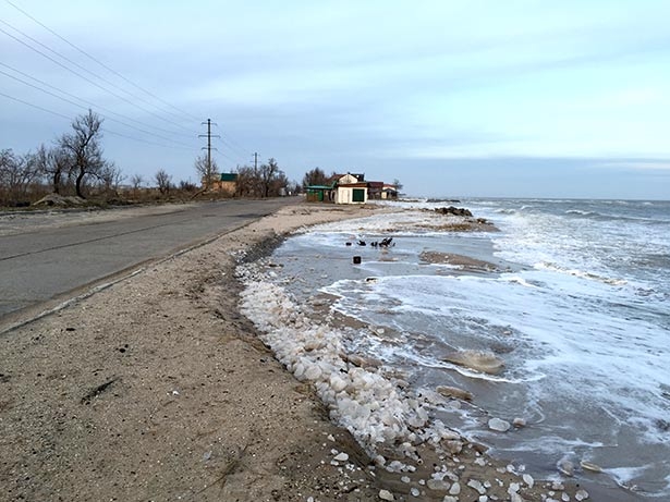 Это место является наиболее проблемным на косе. На данный момент море вплотную подступило к проходящей мимо дороге. Местные жители говорят, что при усилении восточного ветра вода может перекрыть саму дорогу.