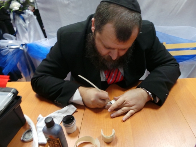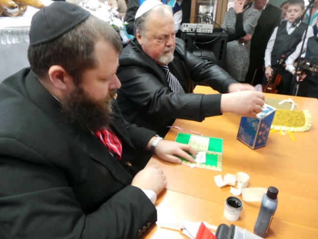 По традиции в новом свитке Торы для синагоги всегда оставляется недописанным текст. И праздник сопровождается торжественной церемонией написания последних букв. Каждый мужчина мог самостоятельно или предоставив такое право сойферу и внеся благотворительный взнос, написать букву в свиток. Но, так как свиток Торы, переданный мелитопольской общине уже был закончен, то раввин Давид, который обучался быть сойфером, на куске пергамента написал специальными чернилами и пером не просто букву, а имена уважаемых в общине людей, представителей национально-культурных обществ Мелитополя, которые пришли на праздник, чтобы разделить радость с евреями. Пергамент вкладывался в открытки-сертификаты, подтверждающие важность момента.