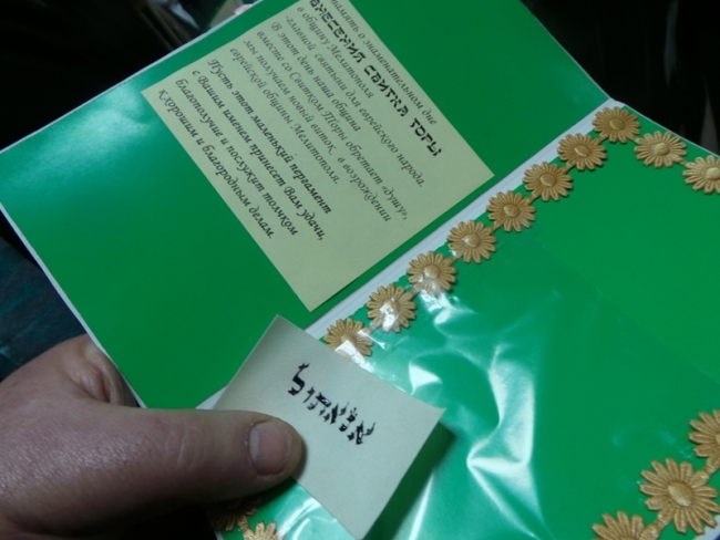 На праздник приехала правнучка последнего мелитопольского габая (старосты синагоги) Моисея Стрельцова - Марина Константинова, которая передала в дар музею общины выписку из свидетельства о рождении в 1901 году у М. Стрельцова дочери Рахили и документ о ее успехах в обучении в Мелитопольской женской гимназии.