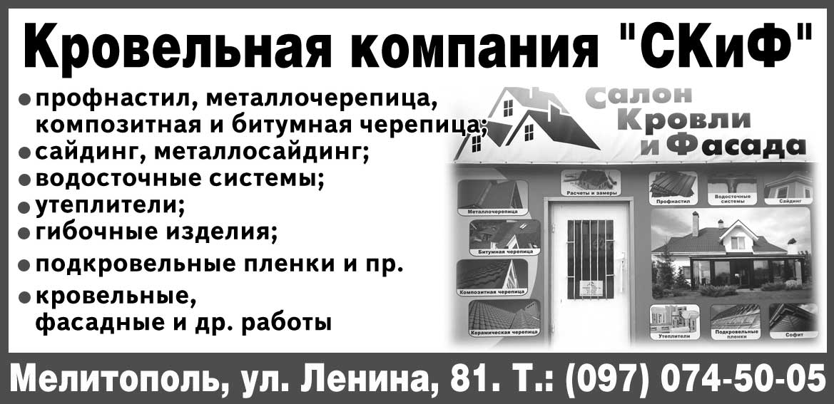 У металлочерепицы более 100 вариантов цветовых оттенков, что позволяет придать сооружению большую выразительность. Изготавливается она из оцинкованной или обычной стали. Единственный ее недостаток - во время дождя шумит как барабан, а осадки в виде града оставляют на ней небольшие вмятины. В Мелитополе есть завод-производитель металлочерепицы и профнастила «Мегарон». Ул. Ворошилова, 289/1. Тел. (0619) 41-01-13, 42-42-33. E-mail: [email protected].