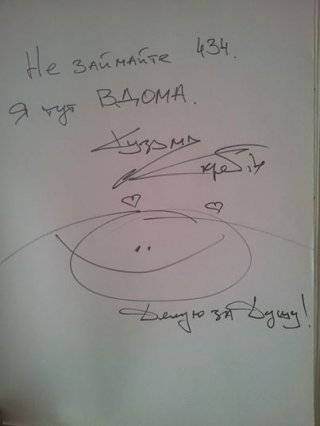 "Не занимайте 434-й. Я тут дома. Кузьма Скрябин. Спасибо за душу", - сказано в записке, которую музыкант оставил в гостинице "Театральная".