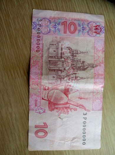 Пользователь соцсети вложила фотографию "десятки" и подписала: "Попалась купюра с серийным номером ЗР0000000. Проверили в супермаркете - настоящая. Есть надпись "зразок". Видно, что пытались затереть. Может кто слышал что это?".