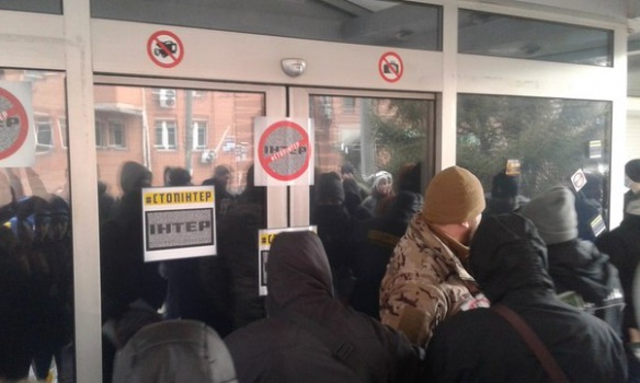 На данный момент заблокированы все входы, собравшиеся скандируют: "Нет российской пропаганде", "Интер, опомнись!" и "Интер – рупор Кремля".