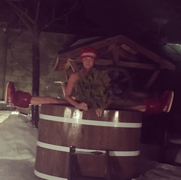 "Ледяная купель – неотъемлемая часть русской бани! Вот бы морозец задержался", – подписала снимок танцовщица.