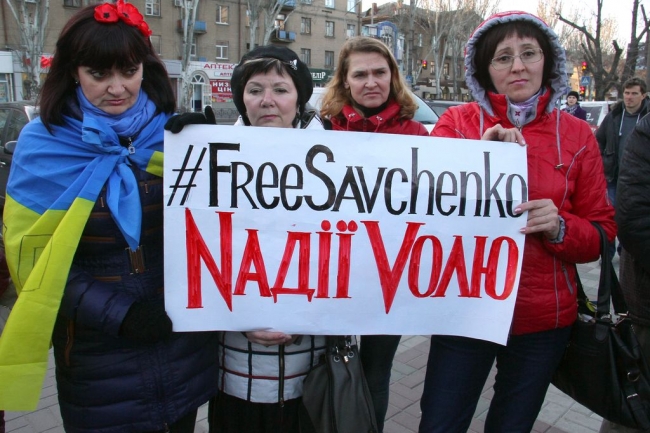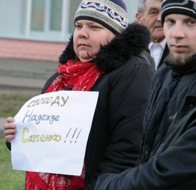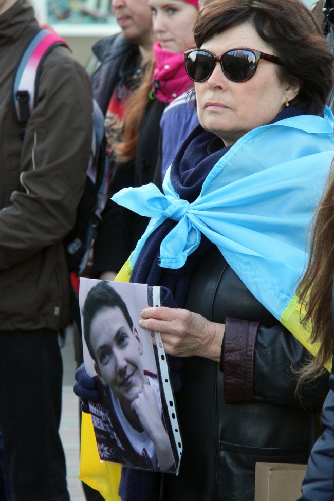 Митинг ко дню рождения поэта был совмещен с митингом в поддержку украинской летчицы Надежды Савченко.