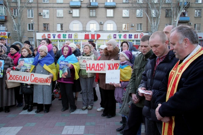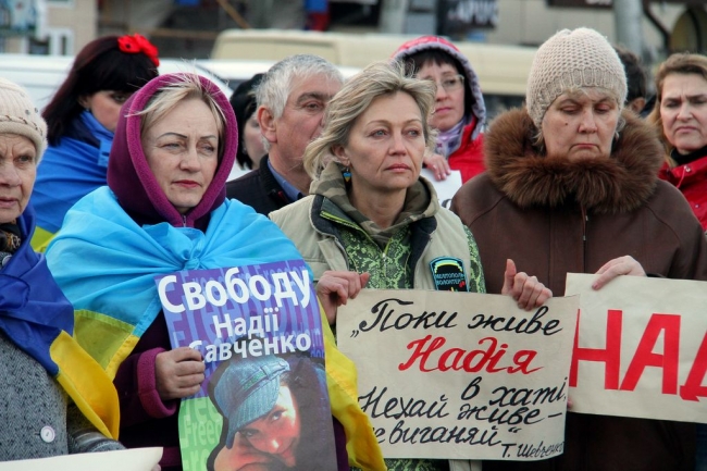 "Нас было так мало сегодня у памятника Тарасу Шевченко в день его рождения..., и даже вторая причина, по которой мы собрались - боль за Надежду Савченко, никого не всколыхнула, не привела на площадь, не объединила. Где вы, красивые "вышиванки", так гордо и патриотично шагавшие некогда по улицам города? Или мода на "патриотизм" пошла на спад?", - грустит участница митинга Раида Мингазова.