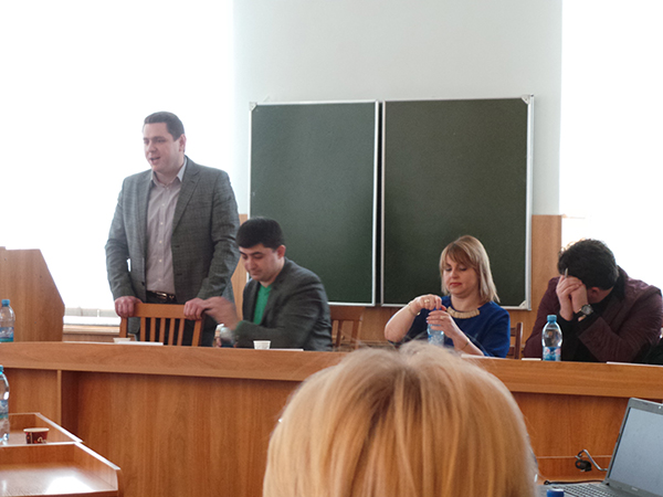 На мероприятии присутствовали как студенты университета, так и преподаватели. Не обошел своим внимание круглый стол и ректор университета В. Молодыченко.