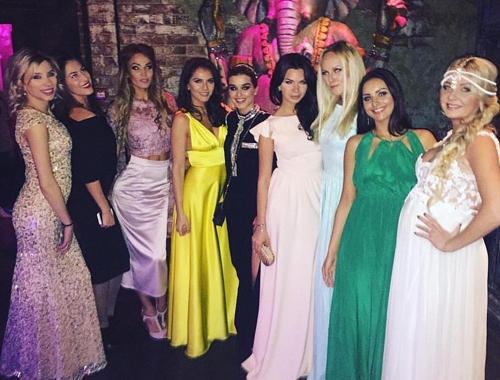 Для празднования Бородина выбрала закрытый черный наряд с эффектным разрезом. Большинство ее гостей, впрочем, предпочли не обращать внимание на «индийский» дресс-код: Бузова, например, облачилась в белое платье собственного дизайна, а Водонаева - в провокационный костюм цвета чайной розы. Зато ответственно к подбору образов подошли беременная Дарья Пынзарь и телеведущая Нелли Ермолаева.