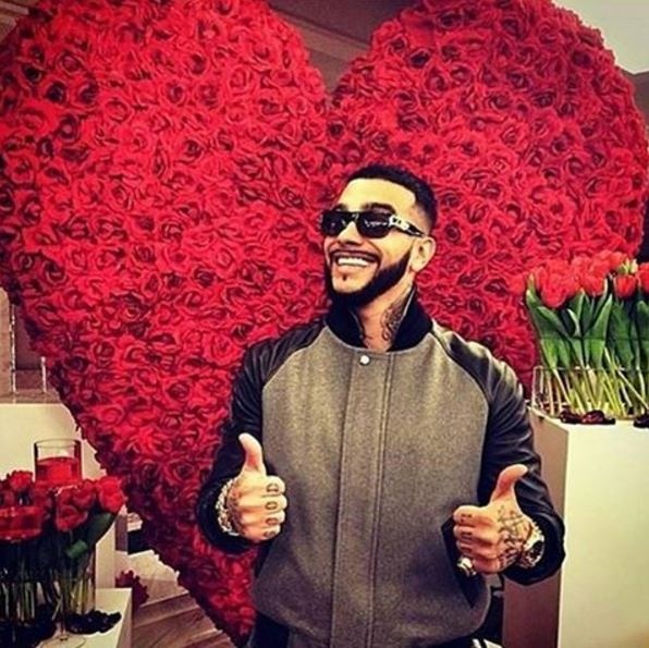 Сам рэпер опубликовал у себя снимок, где позирует на фоне большого сердца, выложенного из красных роз