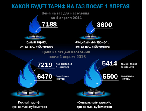 С октября 2015-го по апрель этого года в Украине действует "социальный" тариф на газ – 3600 гривен за тысячу кубометров. Однако в мае всем придется платить по полному тарифу - 7188 гривен. К слову, социальная норма потребления газа в месяц составляет около 200 кубометров (720 гривен по "социальному" тарифу и 1440 гривен по полному тарифу).