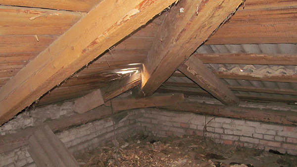 Уже около 30 лет не ремонтировалась кровля в ООШ № 22. Местами через дыры в шифере видно небо. При ливнях вода заливает потолки второго этажа, в результате в аудиториях отваливается штукатурка.