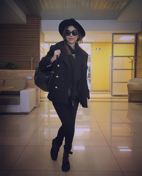 На этот раз певица продемонстрировала total black look, который состоял из вещей темного цвета. Несмотря на мрачность образа в стиле casual, Лорак смотрелась очень позитивно: