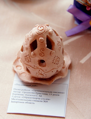 В марте учащиеся городских школ и воспитанники внешкольных учебных заведений принимали участие в городских этапах областных конкурсов-выставок "Писанковий рай", "Початкове технічне моделювання" и "Наш пошук і творчість - тобі, Україно!". Как рассказала завуч СЮТ Елена Прокопенко, традиционный областной фестиваль "Писанковий рай" ежегодно проводится в рамках Всеукраинской выставки-конкурса декоративно-прикладного и изобразительного искусства "Знай i люби свiй край". Его заданиями являются воспитание патриотических чувств, гордости за свою страну и свой край, интереса к истории и культуре, обычаям и традициям украинского народа на примере такого феномена, как писанкарство, и, конечно же, поддержка талантливых детей. 26 учебных заведений Мелитополя представили на фестиваль "Писанковий рай" 195 работ. Такое разнообразие и полет фантазии трудно описать: здесь писанки, крашанки, дряпанки, крапанки, травянки, соломянки, яйца, украшенные бисером, лентами, в технике квиллинг и декупаж, обвязанные крючком, вышитые гладью и крестиком, свалянные из шерсти, выпиленные из дерева. Корзинки, картины, подставки для куличей и писанок, миниатюрные композиции и огромные пасхальные деревья. И отобрать членам жюри, в которое вошли учителя ИЗО и обслуживающего труда городских школ, педагоги СЮТ, нужно только по одной самой искусной работе в каждом разделе, а это всего лишь около двух десятков работ.