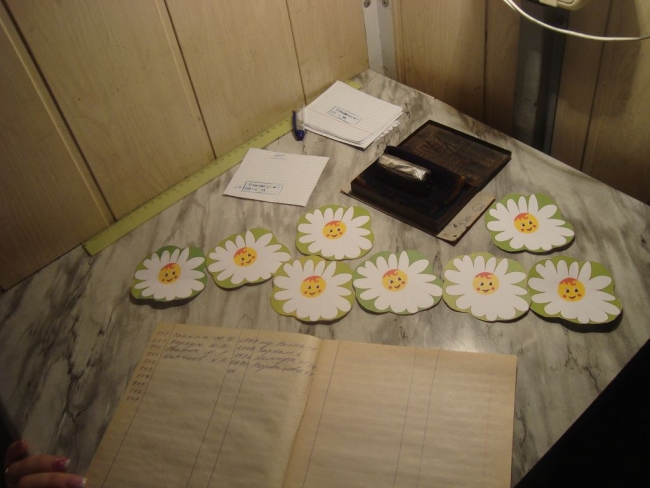 Большая закрытая машина с надписью «Флюорографія» стоит на центральной площади города, вокруг стоят люди, а девушки в белых медицинских халатах раздают прохожим приглашения пройти обследование в виде ромашек, которые являются символом борьбы с туберкулезом.