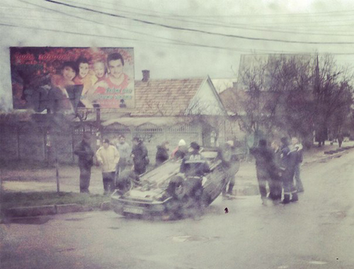 Сегодня на перекрестке просп.Б.Хмельницкого и ул. Вакуленчука около 15 часов рейсовая маршрутка в результате столкновения перевернула автомобиль ВАЗ. По словам заместителя начальника отдела патрульной полиции Мелитопольского отдела полиции Федора Парапанова, у водителя легкового автомобиля случился гипертонический криз и его увезли в больницу. Не исключено, что это и стало причиной ДТП.