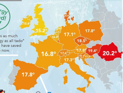 Немецкий производитель термостатов Tado опубликовал инфографику, в которой показал, какую температуру устанавливают на ночь пользователи термостатов в своей квартире в каждой стране.