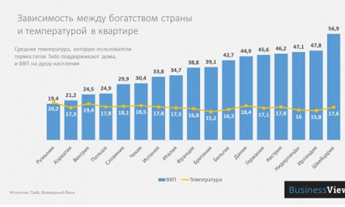 Издание отмечает, что чем богаче государство, тем больше его жители экономят на отоплении. Или наоборот: чем больше жители экономят на отоплении, тем богаче государство.