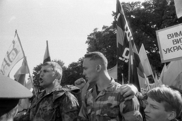 В сети появились раритетные фото известного украинского националиста Александра Музычко, более известного как Сашко Билый. Фото опубликованы в соцсети Facebook в группе "Нацiоналiсти 90х".