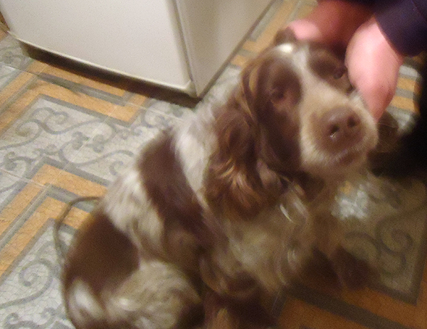 При этом по спаниелю было видно, что собака домашняя, ухоженная и доверчивая. По виду породистая, молодая, возможно, ей около 3-х лет. Окрас бело-коричневый.