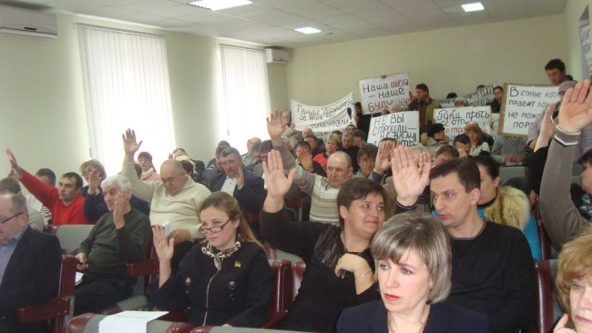 Особенно хорошо выступила голова Розовского сельсовета Таисия Кофанова: «Я бы посоветовала вам сесть и внимательно проанализировать, просчитать, почему это ученик нашей школы государству обходится больше чем в 25 тысяч гривен? Просчитать нужно все, проанализировать штаты, кого-то, может быть, придется сократить, переведя людей из школы на предприятия, может, бухгалтером. Возможно, на чем-то можно будет сэкономить, но, в конце концов, если школа так вам нужна, решить эту проблему желательно своими силами».