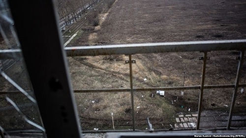 Издание разместило фоторепортаж с разрушенными зданиями. В частности, на снимках можно увидеть два девятиэтажных дома на окраине города. С этого места открывается вид на промзону в пригороде, устланую дымом после боев. Также на горизонте виднеются башни-близнецы у Песок и терминалы Донецкого аэропорта на расстоянии около семи километров.