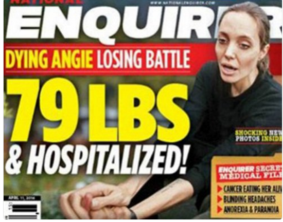 Эксперты считают, что Джоли попросту не может контролировать потерю веса. Таблоиды сообщают, что Анджелина – смертельно больна. Сейчас посол доброй воли ООН путешесвует по миру. На последних фотографиях, сделанных папарацци National Enquirer, видно, что Анджелина бледная и имеет изможденный вид.