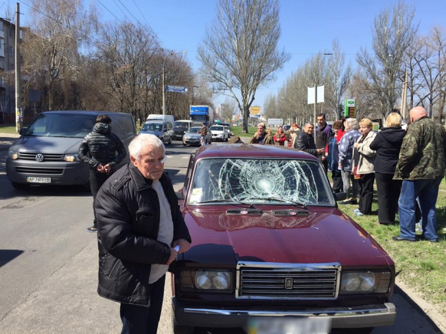 «Пожилой мужчина на автомобиле ВАЗ сбил женщину в возрасте приблизительно 35–40 лет. На месте работают две бригады скорой помощи. Происшествие привлекло внимание прохожих и образовало огромную пробку! То, что мы видели в карете скорой помощи, говорит о том, что женщина в сознании, у нее есть повреждение головы и шейного отдела», – рассказал очевидец, организатор сообщества Helper Запорожье Даниил Щербаков.
