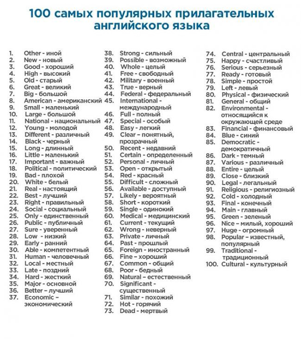 Если к этим словам добавить 100 самых часто используемых существительных, 100 самых часто используемых глаголов и прилагательных, то получится база примерно из 400 слов, которые вы в изобилии встретите в любом английском тексте. Знание этих слов поможет вам проще наращивать свой дальнейший вокабуляр.