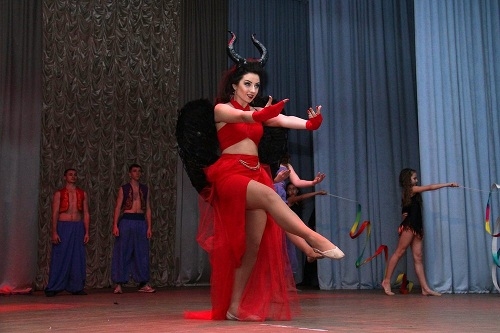 Конкурсный выход "Украина", когда участницы появились на сцене в стилизованных украинских костюмах, еще раз подчеркнул, что самые красивые девушки живут в Украине, в Мелитополе, а учатся - в МГПУ. Завершило конкурсную программу дефиле в вечерних платьях.
