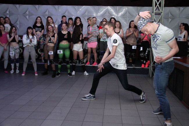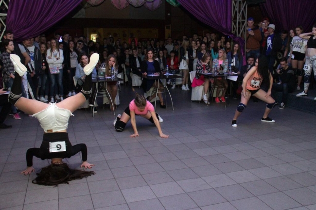 Для начала ведущий вечера Владислав Зеленский произвольно выбрав пять девушек из числа соревнующихся, попросил их вывести на танцпол по два парня. Затем он определил несколько ключевых слов и подобрал движения, которые парни должны выполнять, услышав кодовое слово. Участники сражались за поцелуй в щечку от девушки, которая их вывела. Несколько молодых людей обеспечили хорошее настроение всем своими попытками успеть станцевать правильно и красиво. По решению зрителей, победителей осталось двое. Затем несколько участниц и их подружки пытались написать движениями слово "Тверк".