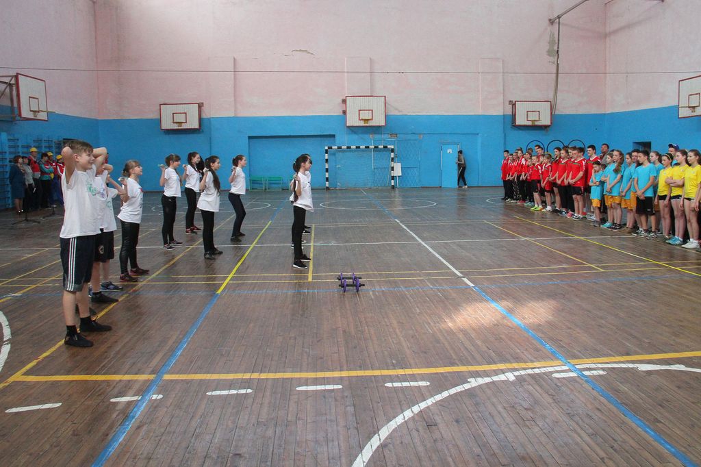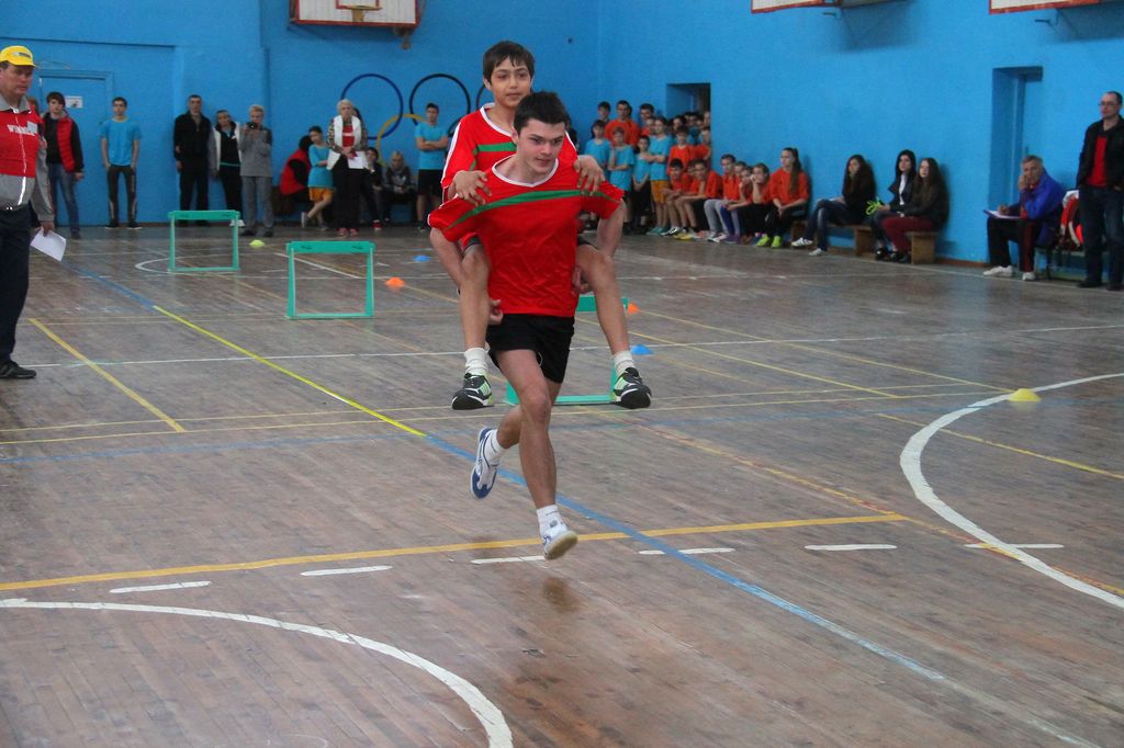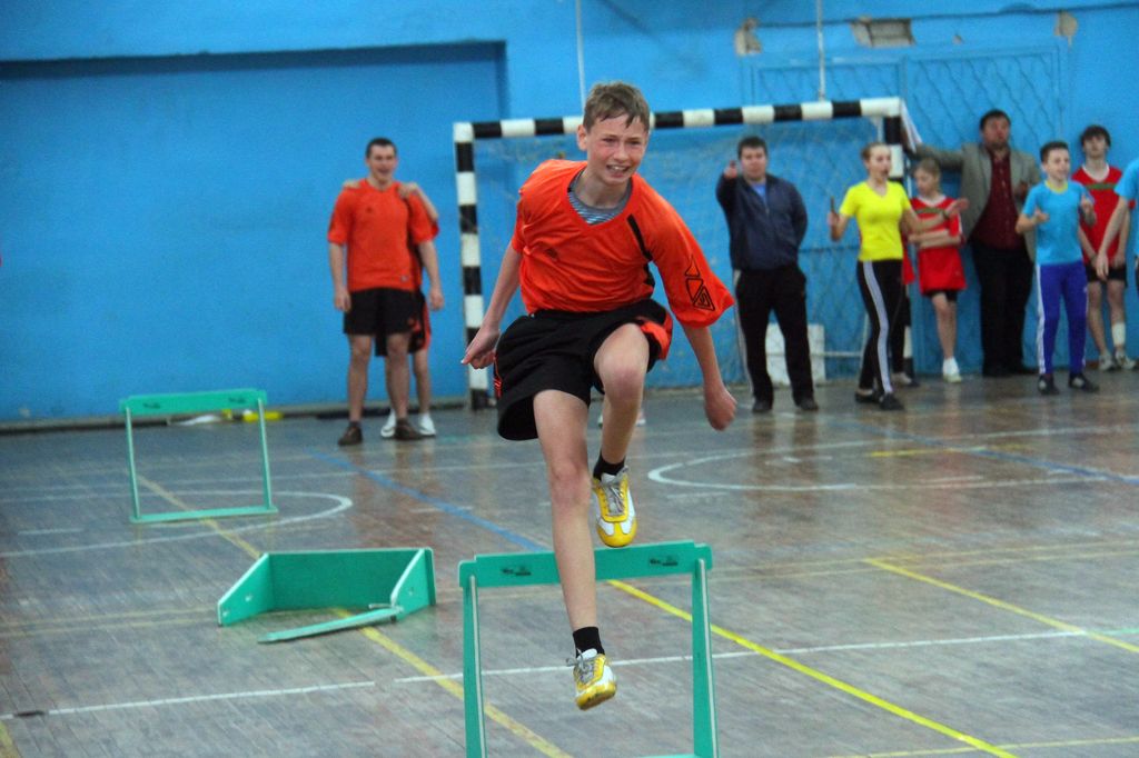 Первым и основным конкурсом соревнования стала эстафета: ребята и бегали, и прыгали, в том числе через препятствия, носили друг друга на руках, подручными средствами стали мячи, обручи и скакалки. Главным здесь было не победить соперника, а потратить как можно меньше времени. Команда Приазовского района, участники которой проходили эстафету последними, вообще ни с кем не соревновалась, так как ей не хватило пары. В итоге жюри оценивало не победу соперника, а время, затраченное на прохождение всех "препятствий". Прежде всего командам давалась пробная попытка, а уже потом шло основное соревнование. Дети очень переживали, подбадривали и подгоняли друг друга.