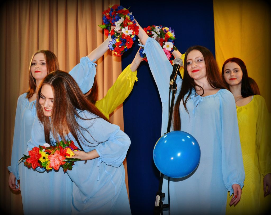 Далее девушки вышли в национальных костюмах "Украина на Купалу" и напомнили зрителю о том, как прекрасны могут быть "українські дівчата" и какие яркие обряды проходили и иногда до сих пор проходят у нас в Украине. Последним стал выход в вечерних платьях - учащиеся и преподаватели впервые увидели девушек в таких образах.