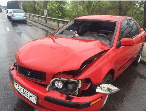 В Киеве на Столичном шоссе, на мокрой дороге "Вольво" разбился об отбойник. При этом неуправляемая легковушка зацепила микроавтобус.
