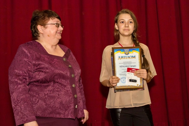 И вот 21 апреля финалистов городского фестиваля детского чтения "Самый умный фантазер" пригласили в ДК им. Т. Шевченко на подведение итогов. За отличные знания литературных героев знаменитых произведений в номинации "Эрудиция" победа была присуждена ученику 5-Б класса гимназии № 19 Левану Габелая. Он получил в награду диплом, энциклопедию и флешку. А призерами в этой номинации и обладателями грамот, художественных книг и канцелярских наборов стали Евгений Глущенко (ООШ № 13, 5 класс), Елизавета Павлюк (5-А кл. ООШ-24), Дмитрий Скрипник (5-А кл., СШ-23), Маргарита Шмыголь (5-А кл., гимназия-10), Юлия Загуменная (5-А кл., ООШ № 4), Анна Снегирь (5-Б кл., ООШ № 7), Владислав Бойко (6-В кл., ООШ № 7).