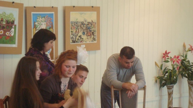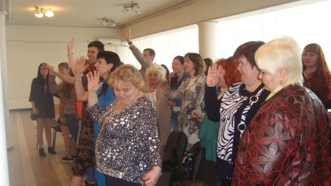 В воскресенье, 24 апреля, в Мелитополе в ДК им. Т. Шевченко проходило мероприятие, в котором при помощи театральных методов люди пробовали понять, прочувствовать сложные проблемы современности. Выглядело это действо так: около полусотни зрителей собралось в малом зале ДК, а гости сыграли им короткую пьесу из 4-х сцен собственного сочинения.