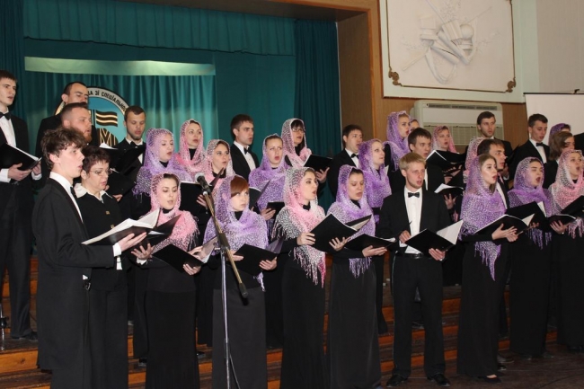 Фото автора: На торжественном открытии всеукраинской олимпиады выступила хоровая капелла МГПУ им. Б. Хмельницкого. Худрук и дирижер Наталья Сегеда.