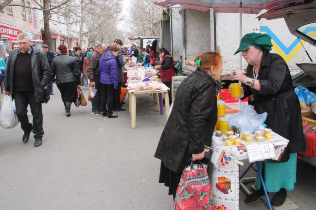 Чтобы проверить соотношение цен, мы отправились на еженедельную ярмарку на «стометровку» на Грушевского. Народу много. Заглядывают на товар. Больше всего здесь торгуют медом и конфетами. Много и овощей, мяса и молочной продукции. Предварительно забежав на Центральный рынок, изучаю цены здесь. Разница, если и есть, то незначительная - 1-3 гривны на килограмме. Самая большая - на рыбе. Соленую селедку можно было купить по 45 грнкг вместо рыночных 50 грн. Иногда продавцы не заморачиваются и просто распечатывают рекомендуемые исполкомом цены на свой товар. Впрочем, торговлю бойкой не назовешь. Хорошо продаются, пожалуй, всякие саженцы и отросточки. За 10 грн можно купить кустик чабреца, а за 120 грн - саженец кизила.