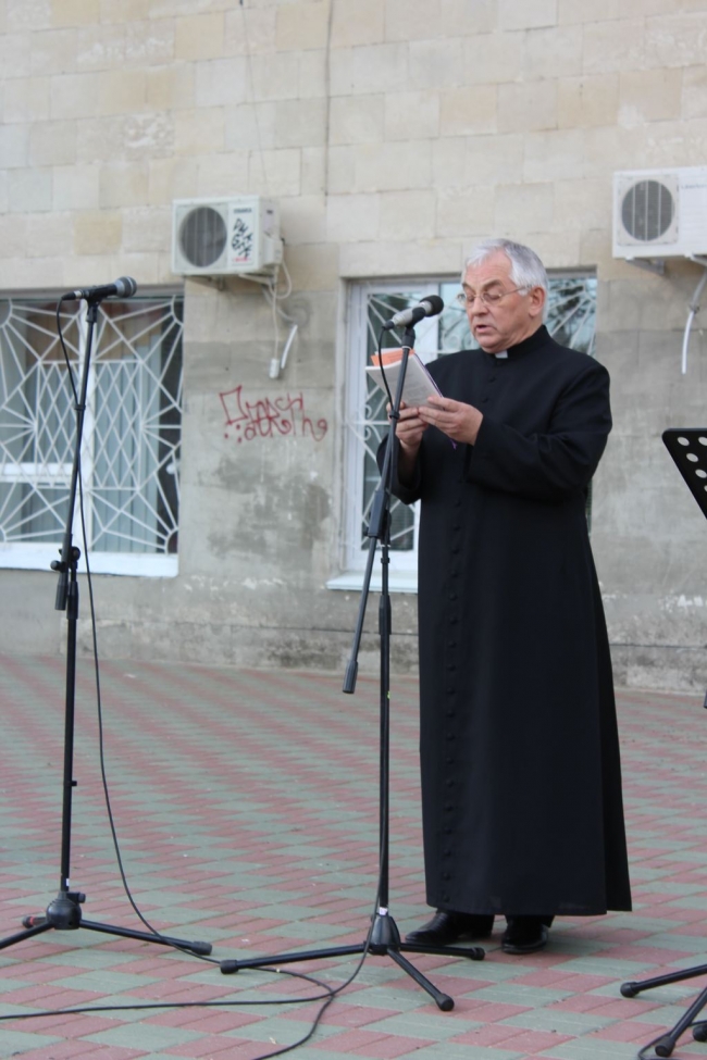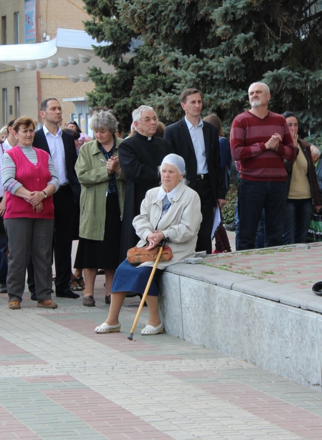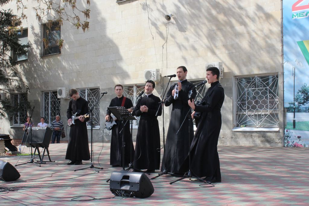 Продолжил концерт гость из Кривого Рога, бандурист Иван Шабля. Парень исполнил пару украинских песен, аккомпанируя себе на бандуре. Несколько композиций исполнил и мелитопольский хор – люди молились в песне. Присутствующие прониклись настроением песенных молитв, получая удовольствие от присутствия на этом божественном мероприятии. Со своим словом обратился к присутствующим и настоятель римо-католической церкви отец Адам Гансйор. Также на концерте выступили сольные исполнители Евгений Соловьев, Маргарита Прокопчук и хор служения незрячих.