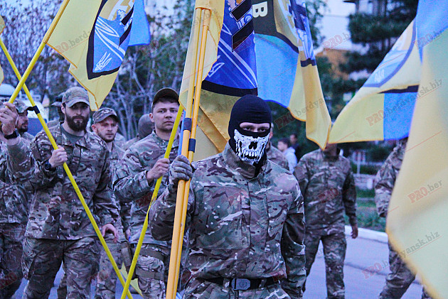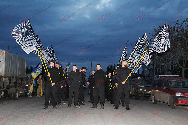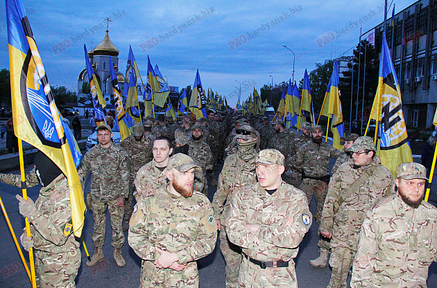 Руководители полка поблагодарили бердянцев за то, что два года назад дали бойцам кров над головой и помогали, чем могли. Именно поэтому было принято решение отметить вторую годовщину с дня основания в Бердянске. Вчера несколько сотен бойцов и активистов гражданского корпуса прошли маршем от "Спорткомплекса" до Приморской площади, где прошел торжественный митинг.