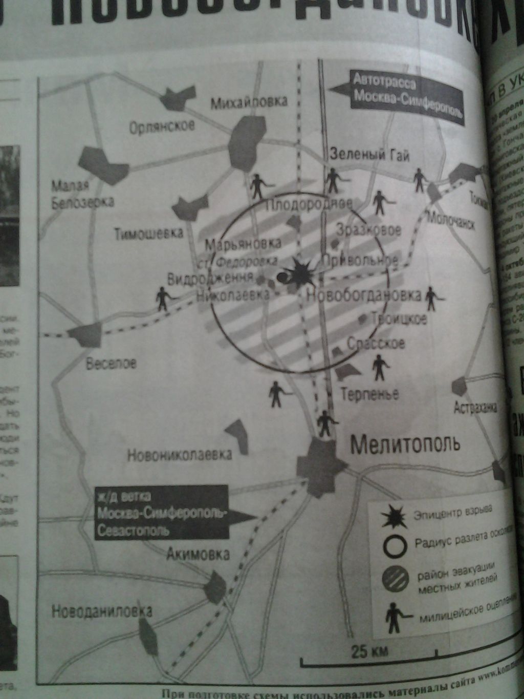 Сегодня, 6 мая, двенадцать лет назад Новобогдановский сельский совет и Мелитопольщина "прославились" на всю страну. На артскладах возле с. Новобогдановка начался пожар, вследствие которого стали взрываться склады с боеприпасами.