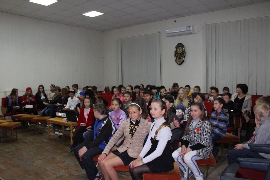 Под конец лекции школьникам показали кадры из украинского фильма "Незламна", рассказывающий историю реальной девушки - 23-летней Людмилы Павличенко, которая воевала на передовой, самой успешной женщины-снайпера в мировой истории (имела на своём счету 309 подтверждённых смертельных попаданий в солдат и офицеров войск противника).
