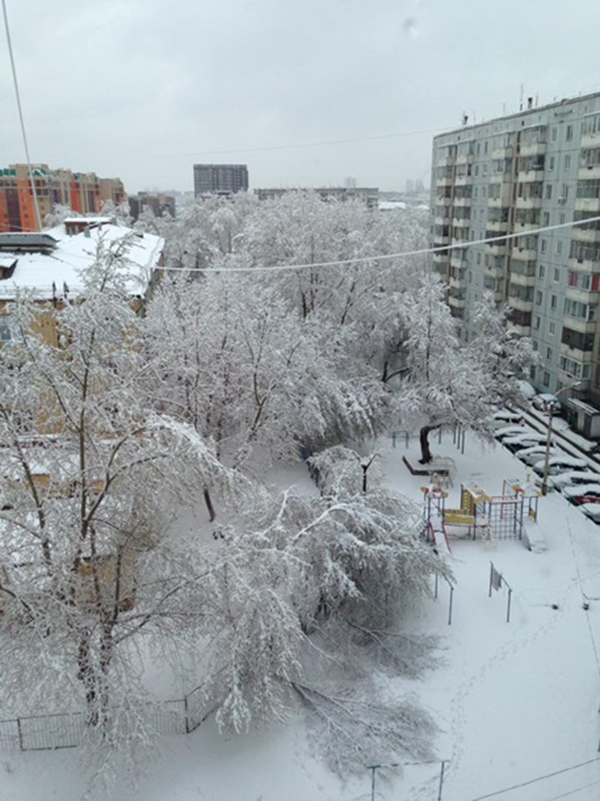 На дорогах образовываются либо большие лужи, либо снежная каша. Огромные глыбы снега падают с крыш, под тяжестью снега падают деревья.