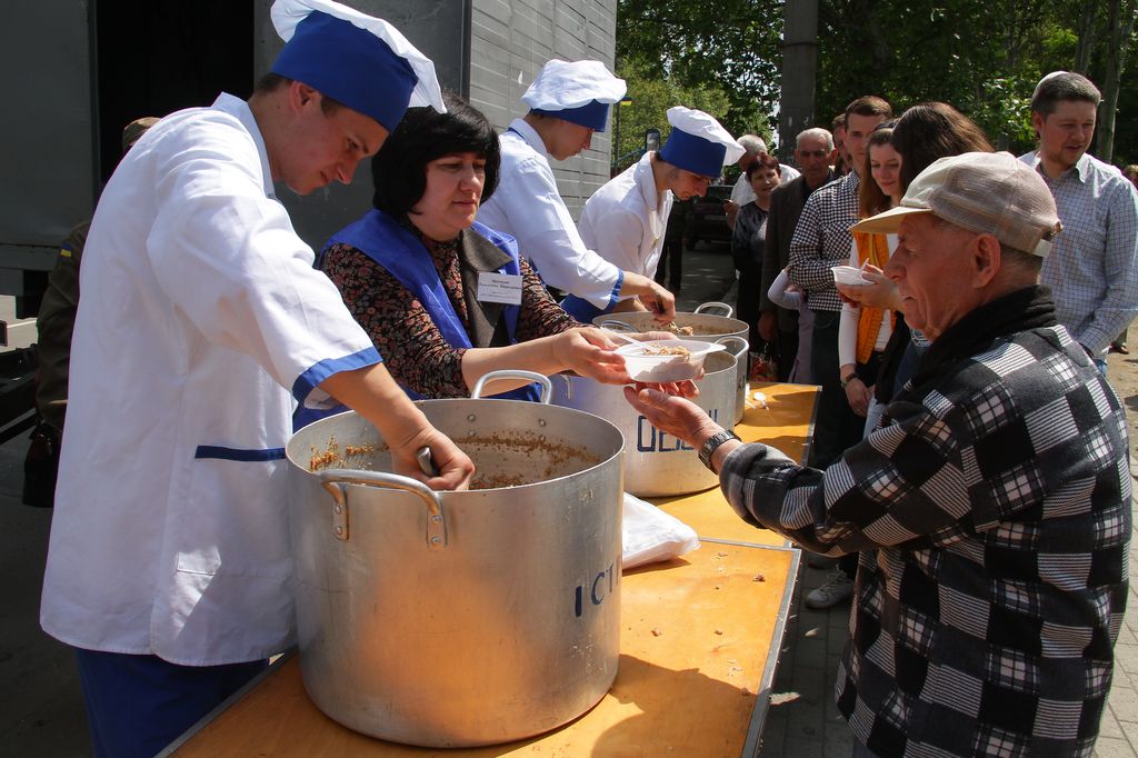 Праздник Победы мелитопольцы продолжили в парке культуры и отдыха им. М. Горького. Кто-то дегустировал солдатскую кашу из походных кухонь, кто-то добавлял к каше солдатские "сто грамм", кто-то гулял по парку и смотрел выступления художественных коллективов города.